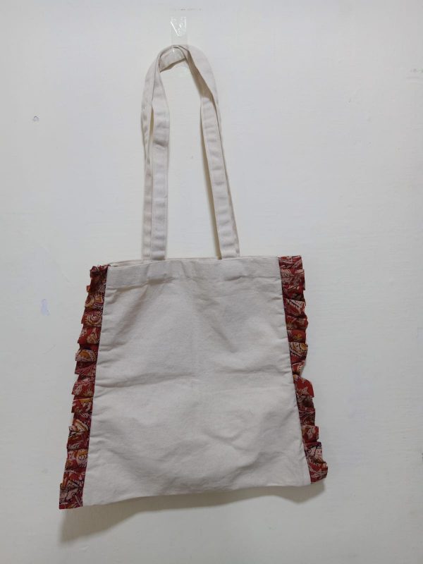 Elegant cotton tote with charming frill accents, perfect for casual and festive outings