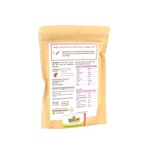 A blend of Urad Dal, Channa Dal, Red chillies, Salt, Asafoetida, Flax Seeds powdered together to make a healthy podi which can be used as a side dish with idly and dosai.