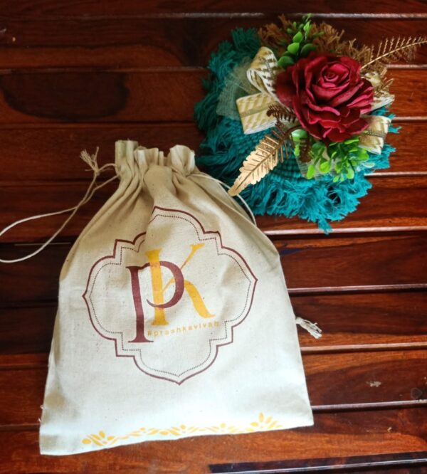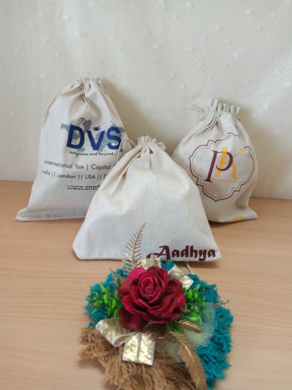 customized screen print/ logo prints on high quality cotton fabric with a durable drawstring.