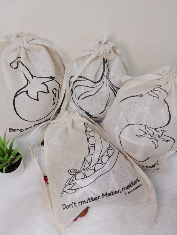 thin airy refrigerator friendly cotton potlis to store vegetables & fruits
