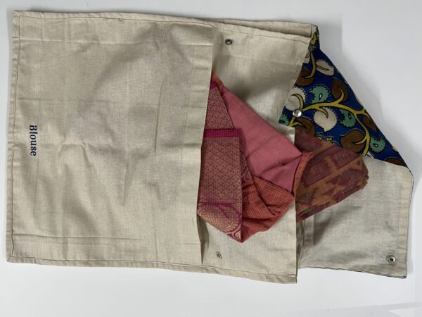Two saris storage bag made of good quality cotton and flap closure making it easy to store saris.